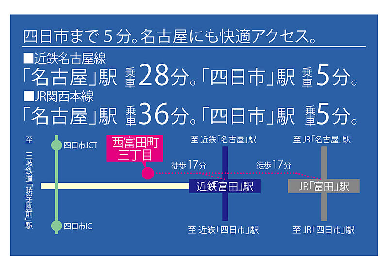 近鉄名古屋線「近鉄富田」駅 徒歩17分 JR関西本線「富田」駅 徒歩17分 |
