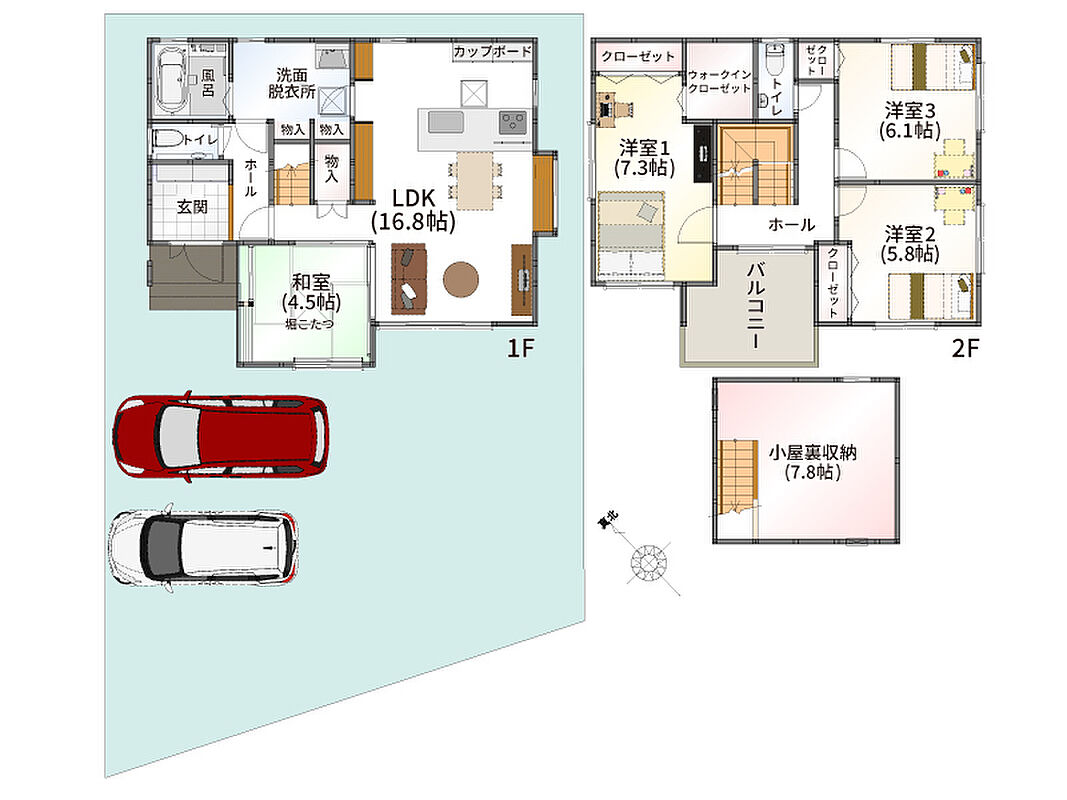- ※完成予想図やCG合成画像は、門塀・植栽・庭・外観等、実際とは多少異なる場合があります。