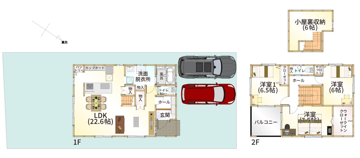 - ※完成予想図やCG合成画像は、門塀・植栽・庭・外観等、実際とは多少異なる場合があります。