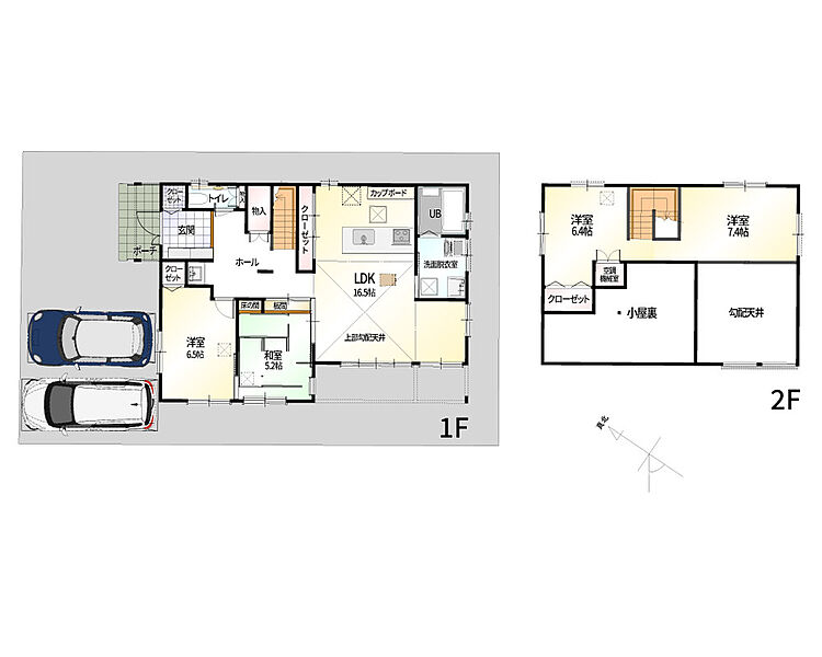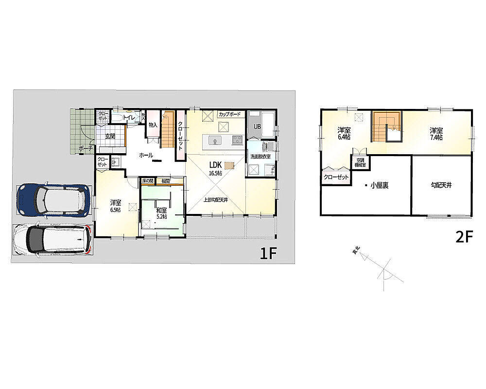 20号地 間取り 3SLDK+ 小屋裏収納(固定階段付) 価格 4852万円 建物面積 131.71m2(車庫含22.81m2) 土地面積 164.00m2 -