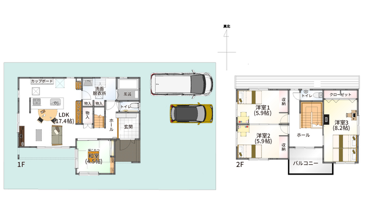- ※完成予想図やCG合成画像は、門塀・植栽・庭・外観等、実際とは多少異なる場合があります。
