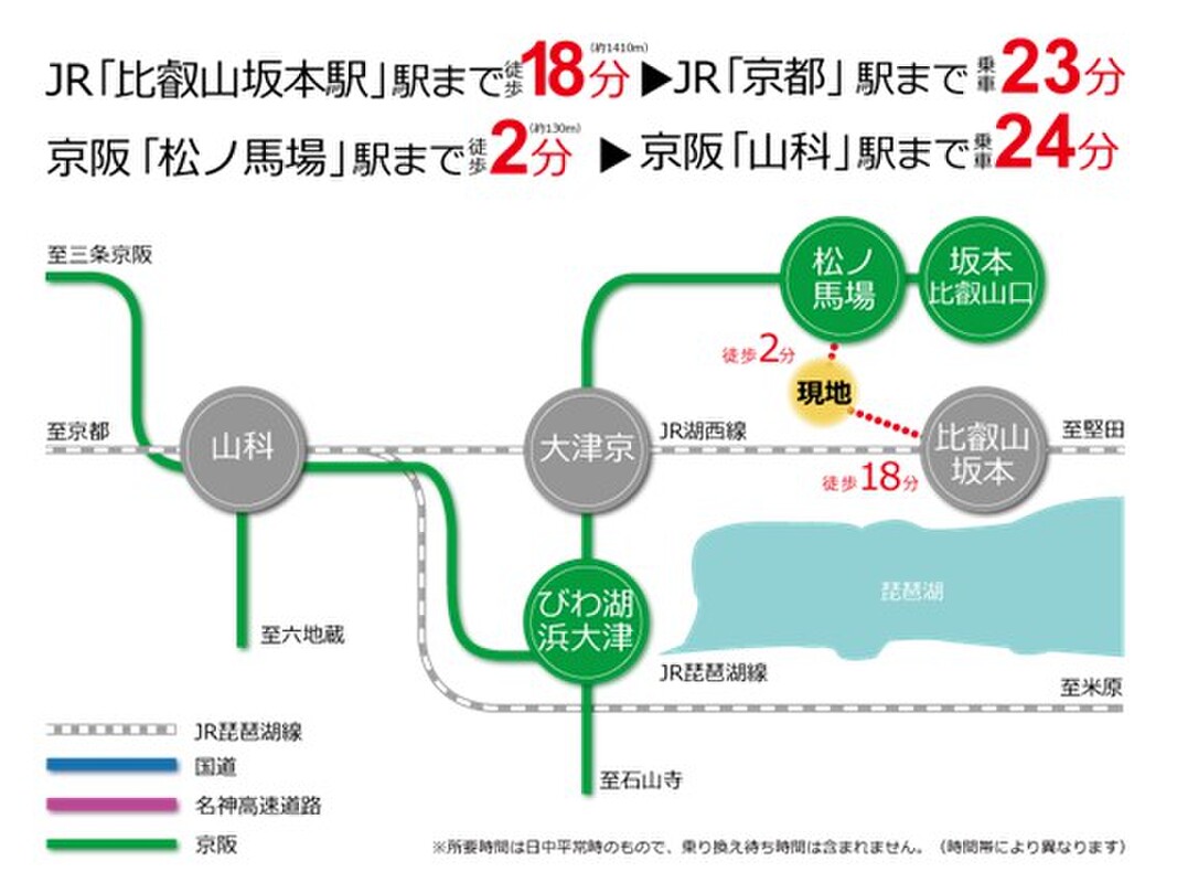 京阪石山坂本線「松ノ馬場」駅 徒歩2分~3分 JR湖西線「比叡山坂本」駅 徒歩18分~19分 |