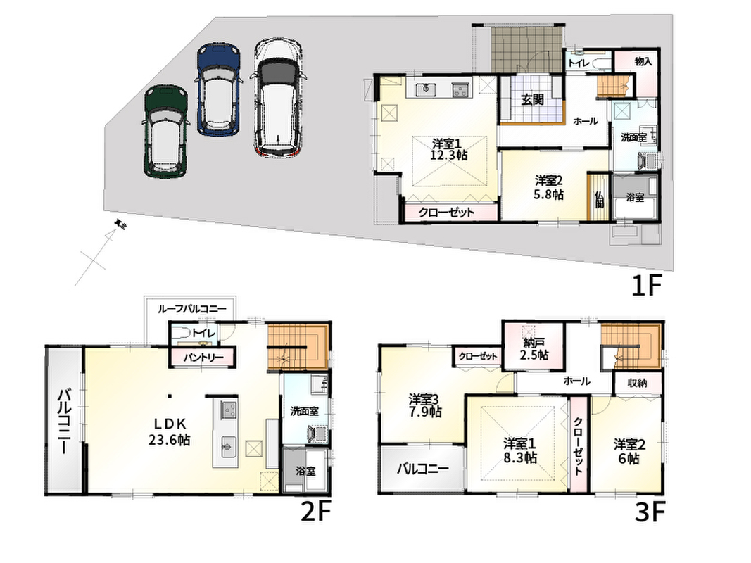 1号地 間取り 5LDK(3階建) 価格 6580万円 建物面積 172.81m2 土地面積 165.29m2 -