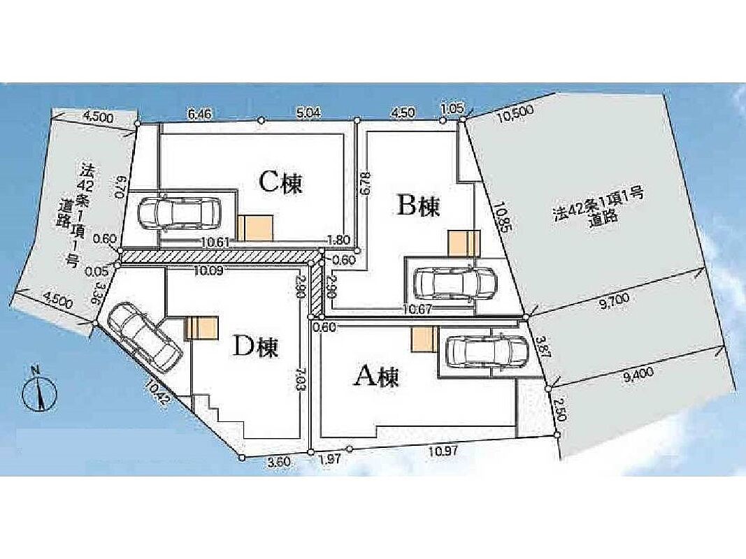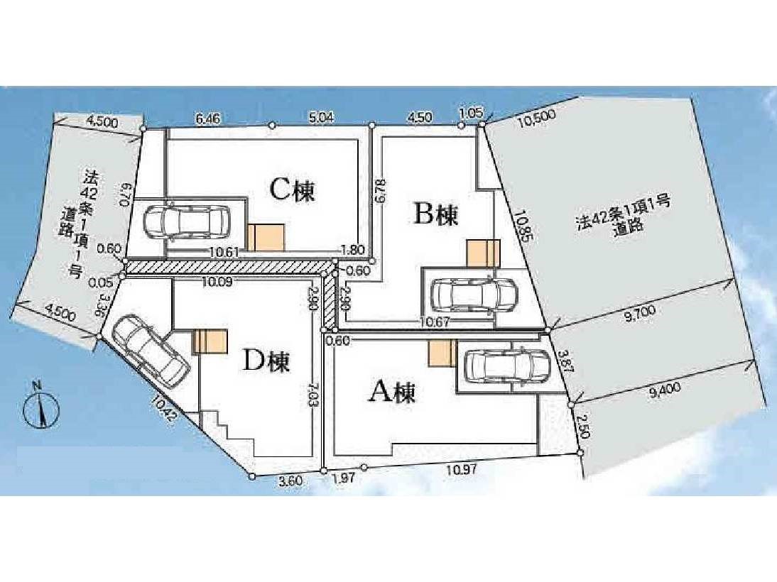 | 駐車場 | 1台 | 道路の幅員 | D棟:東4.5m /A棟:東9.4m /B棟:東9.4m |