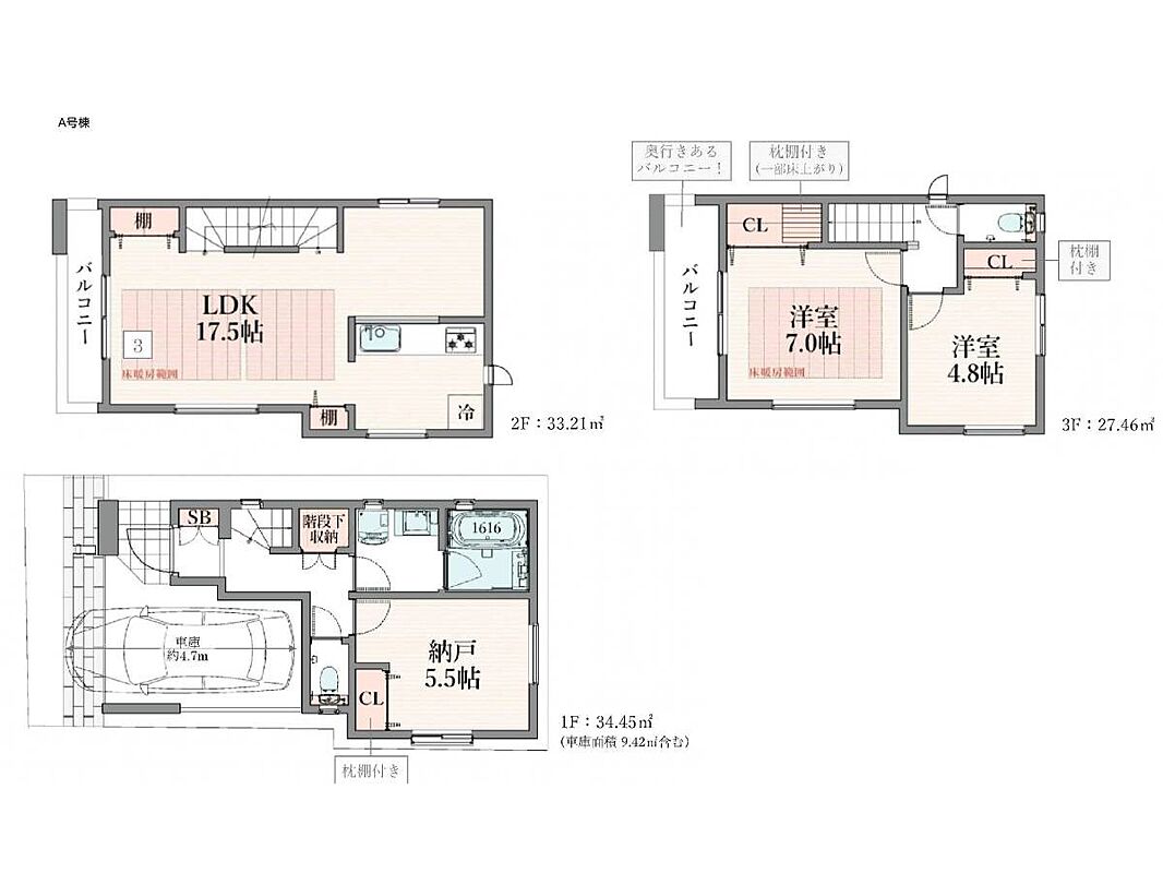 | 建物面積 | 95.12m2 | 土地面積 | 55.24m2<私道負担面積32m2 私道負担割合1/10> |