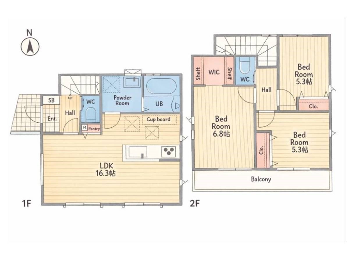 ◆キッチンはカップボード、主寝室はWICなど充実の収納スペース P2台