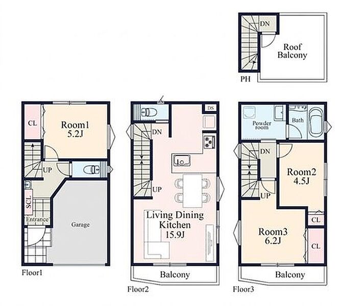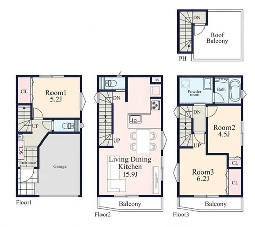 | 間取り | 3LDK | 建物構造 | 木造 3階建 |