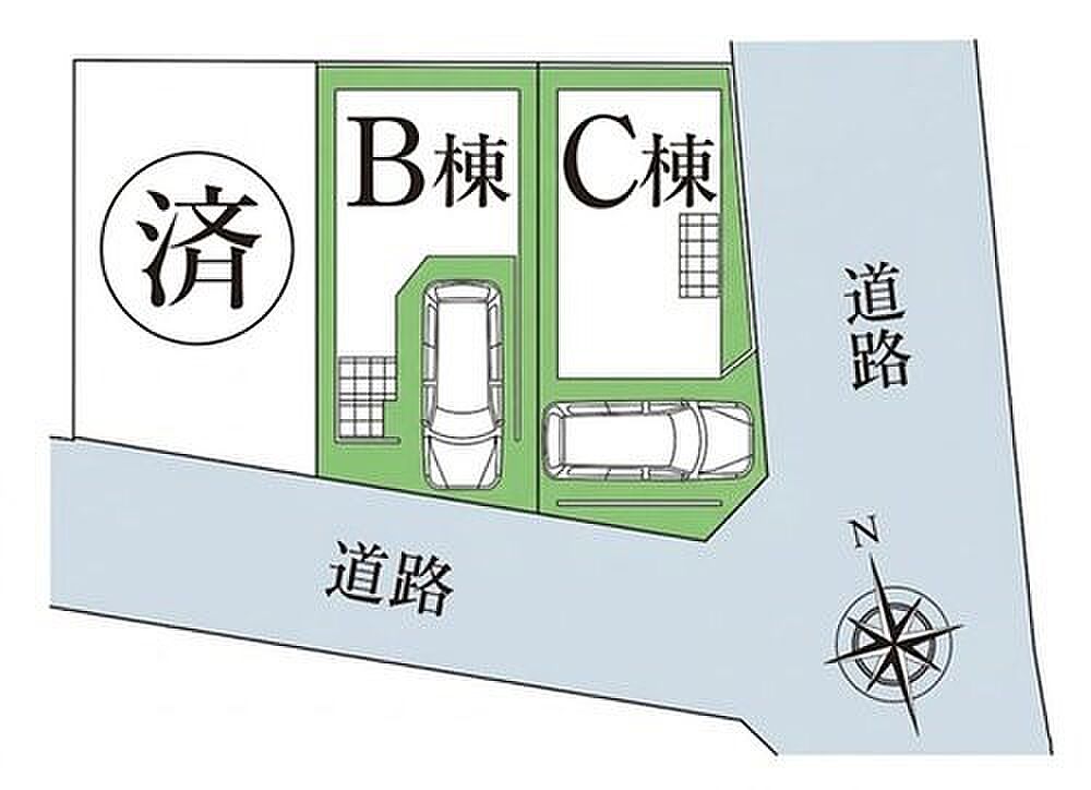 | 駐車場 | 1台 | 道路の幅員 | B号棟:南4m/C号棟:南4m 東5.4m |