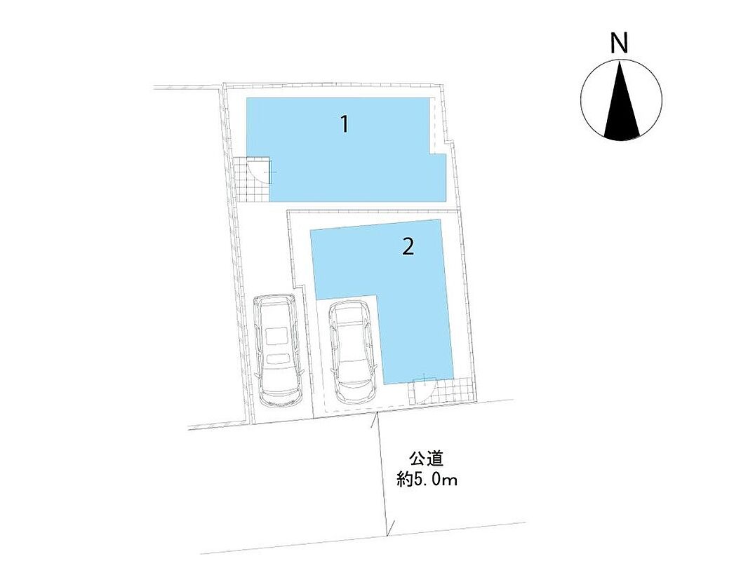 | 駐車場 | 1台 | 道路の幅員 | 2号棟:南5m/1号棟:南5m |