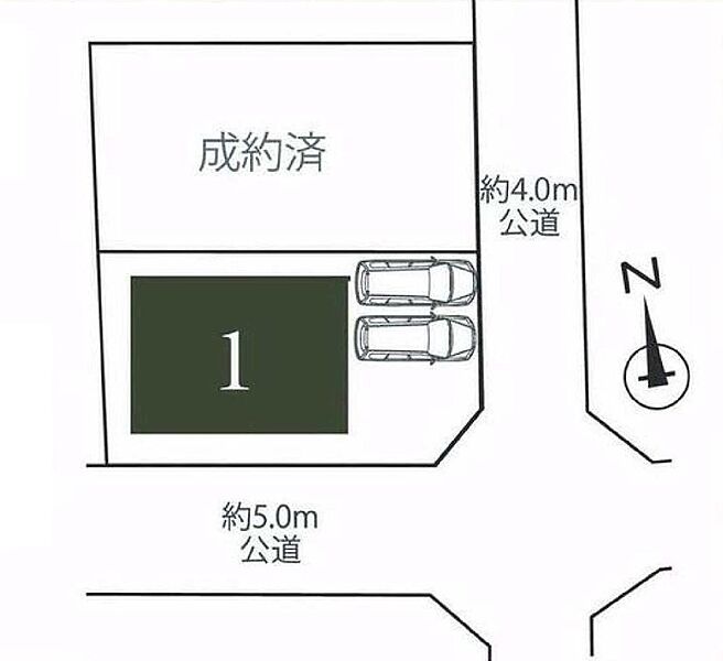 | 駐車場 | 2台 | 道路の幅員 | 1号棟:南5m 東4m |