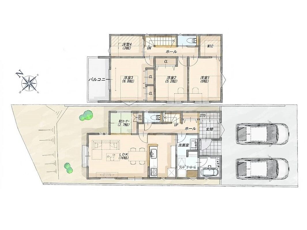 - ※完成予想図やCG合成画像は、門塀・植栽・庭・外観等、実際とは多少異なる場合があります。