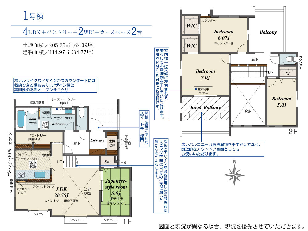 | 建物面積 | 114.97m2(約34.77坪) | 土地面積 | 205.26m2(約62.09坪) |