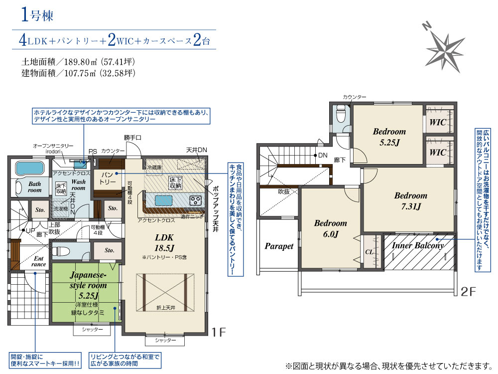 | 建物面積 | 107.75m2(約32.59坪) | 土地面積 | 189.80m2(約57.41坪) |