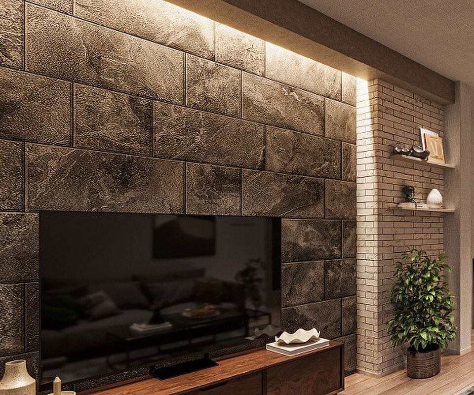 【アクセントウォール・間接照明】深みのある素材に柔らかな光が陰影を添え、上質さを演出。