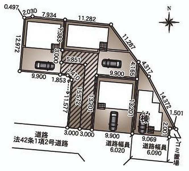 | 駐車場 | 2台 ~ 3台 | 道路の幅員 | 道路幅:6m、アスファルト舗装 |