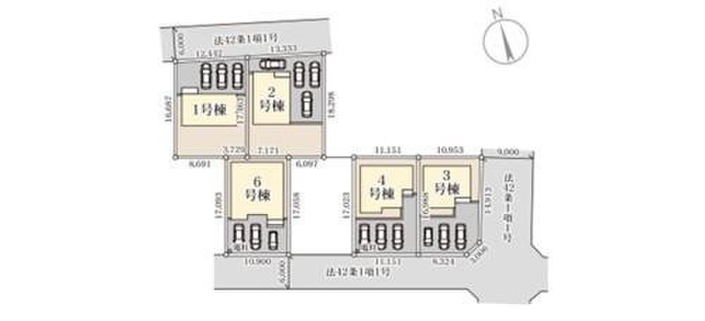 | 駐車場 | 3台 ~ 4台(3台(4戸)・4台(1戸)) | 道路の幅員 | 道路幅:6m~9m、アスファルト舗装 |