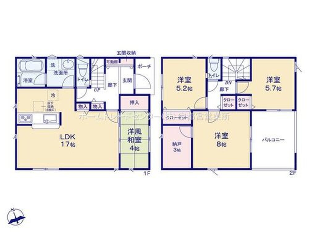 2号棟 間取り 4LDK 価格 2990万円 建物面積 96.39m2 土地面積 205.2m2 -