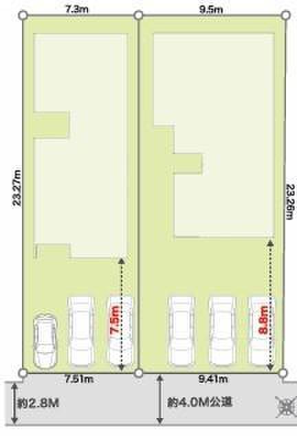 | 駐車場 | 3台 | 道路の幅員 | 道路幅:2.8m、アスファルト舗装 |