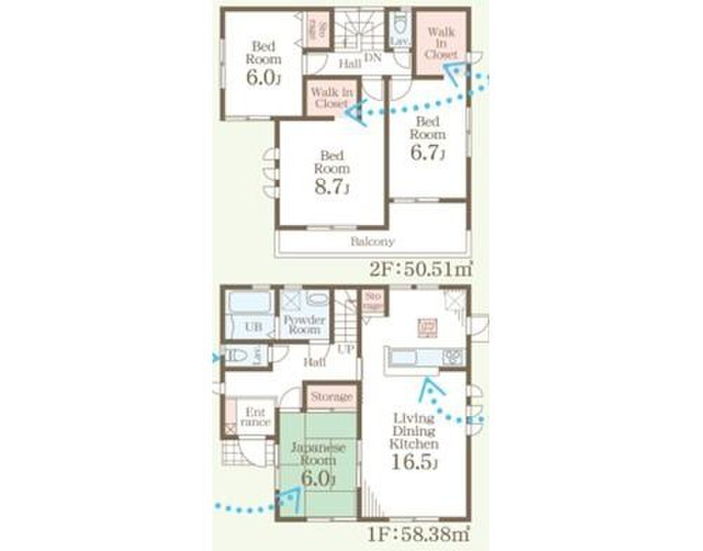 | 建物面積 | 105.99m2~122.55m2 | 土地面積 | 186.03m2~233.77m2 |