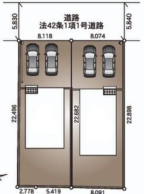 | 駐車場 | 2台 ~ 3台 | 道路の幅員 | 道路幅:5.8m、アスファルト舗装 |