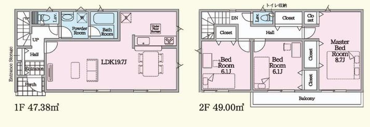 | 建物面積 | 93.14m2~99.14m2 | 土地面積 | 114.88m2~147.19m2 |