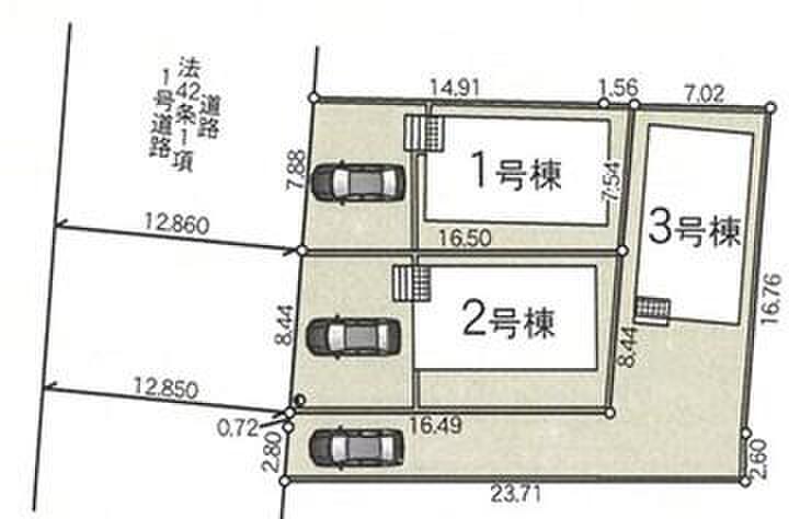 | 駐車場 | 1台 ~ 3台 | 道路の幅員 | 道路幅:12.8m、アスファルト舗装 |