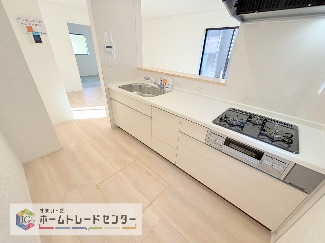 キッチンからリビングを見渡せますので、お料理やお片付け中もご家族とコミュニケーションをお取りいただけます。そしてキ自体も明るくなりますし、風も抜けますので衛生面で見ても安心いただける作りです。