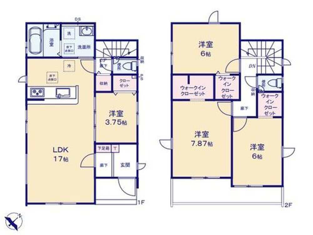 □2階の3居室すべてにウォークインクローゼット付き