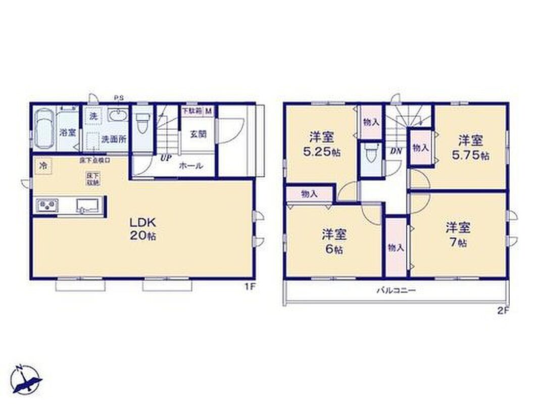 F号棟 間取り 4LDK 価格 4390万円 建物面積 98.75m2 土地面積 147.79m2 -