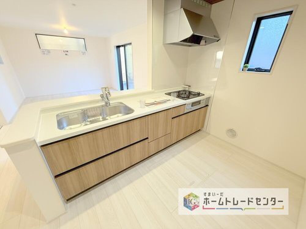 人気の対面式キッチン☆お食事の準備をしながらでもご家族とのコミュニケーションを楽しめます♪スライドタイプの収納を採用してますので、奥までしっかりと収納空間を利用できます。取り出しも簡単に♪