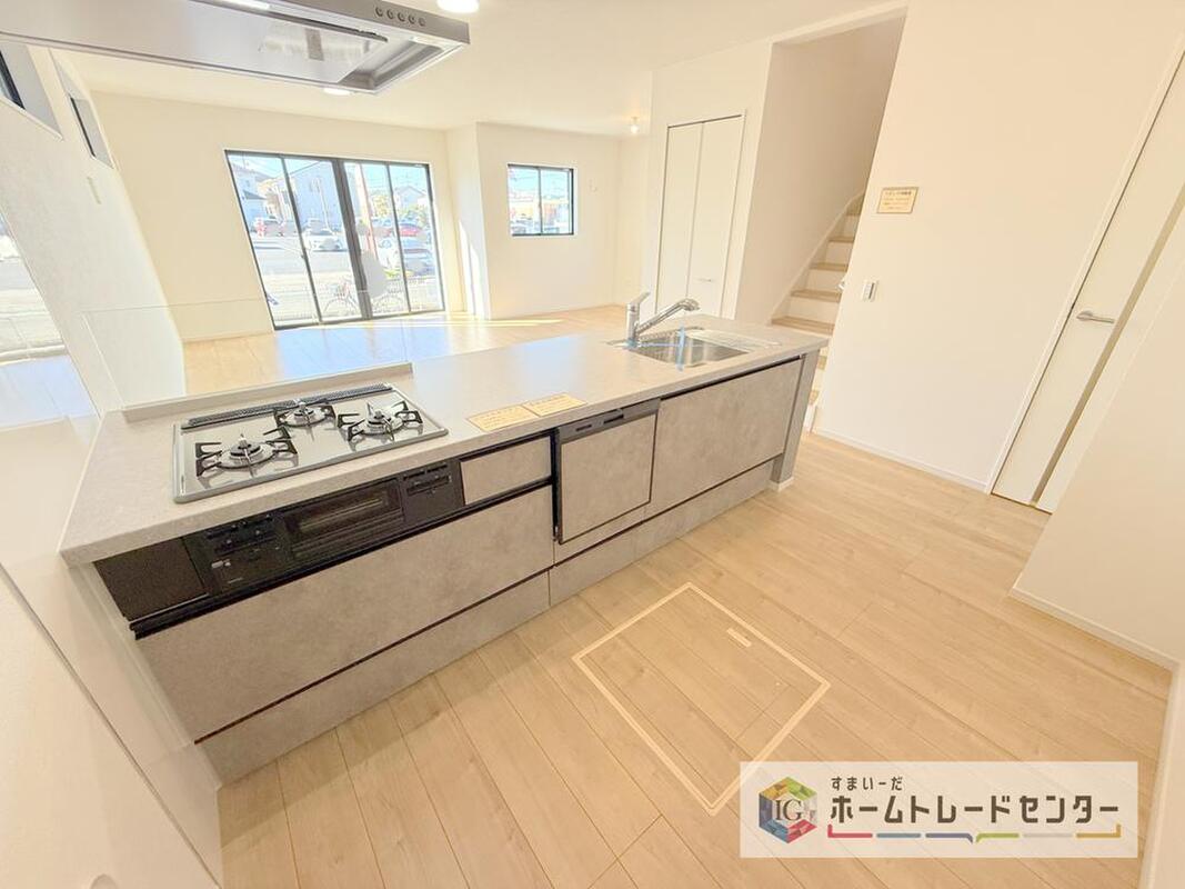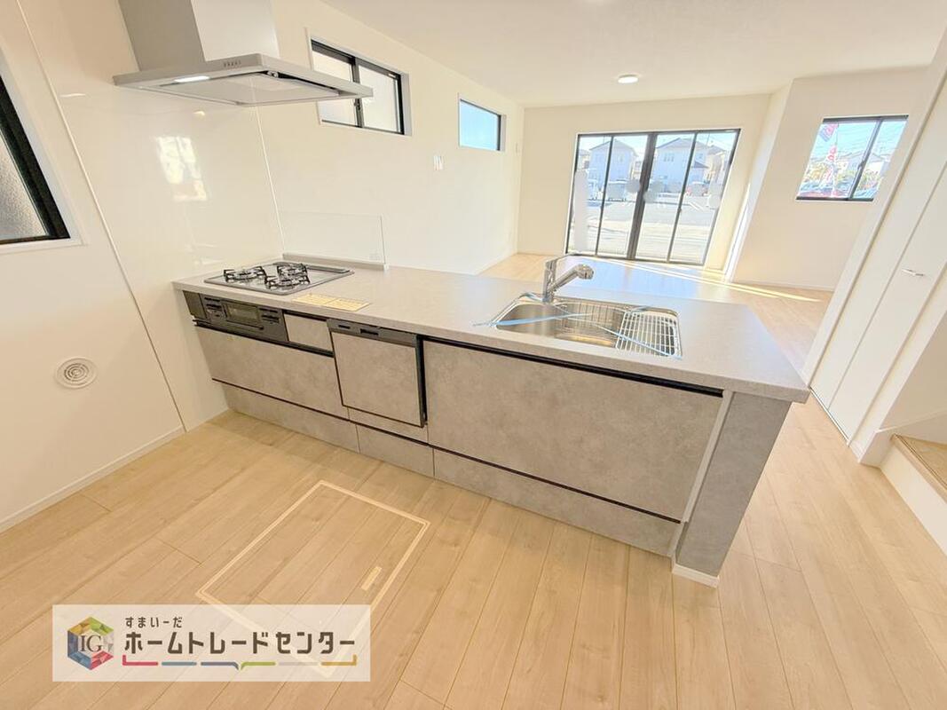 キッチンからリビングを見渡せますので、お料理やお片付け中もご家族のコミュニケーションをお取りいただけます。そしてキッチン自体も明るくなりますし風も抜けますので衛生面で見ても安心いただける作りです。