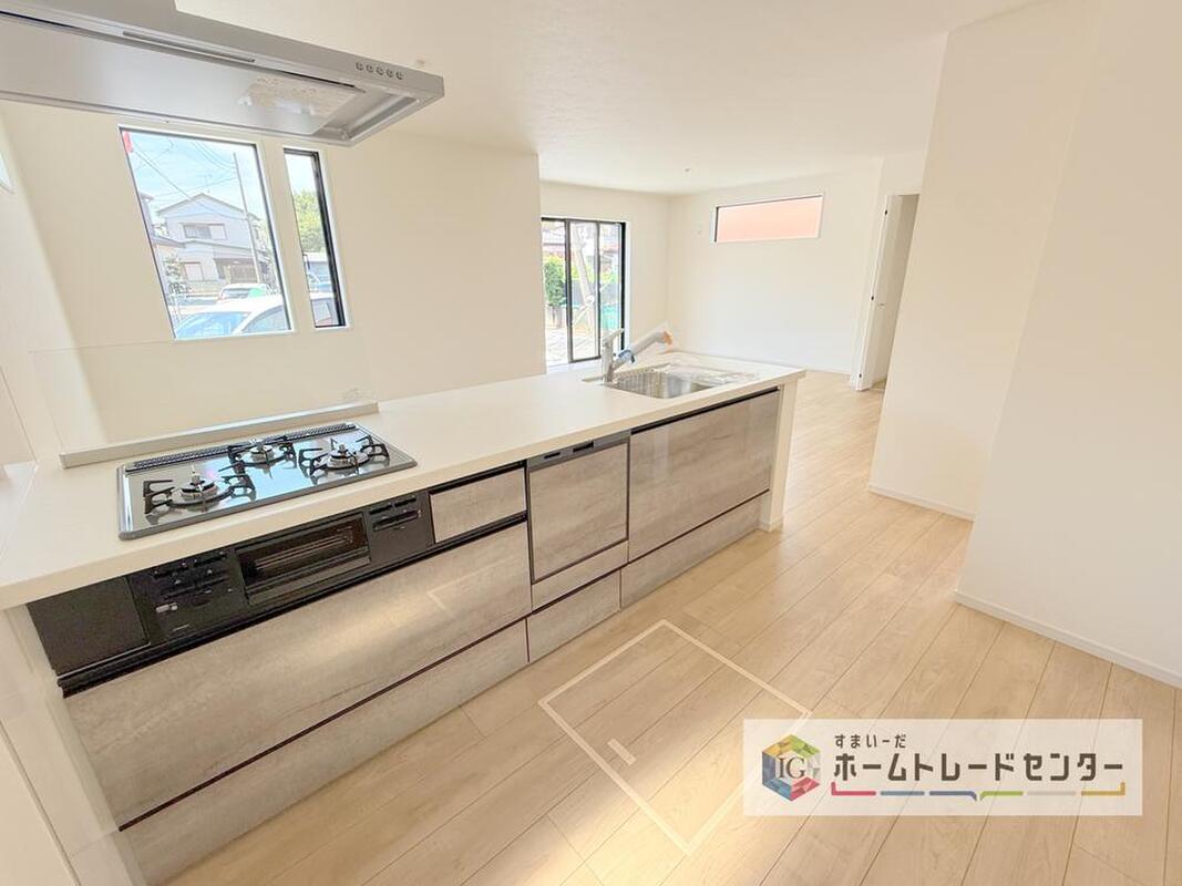人気の対面式キッチン。料理をしながら家族と会話でき、小さなお子さまやペットにも目が届いて安心です。食事の準備中も一緒に過ごす時間が増えます。
