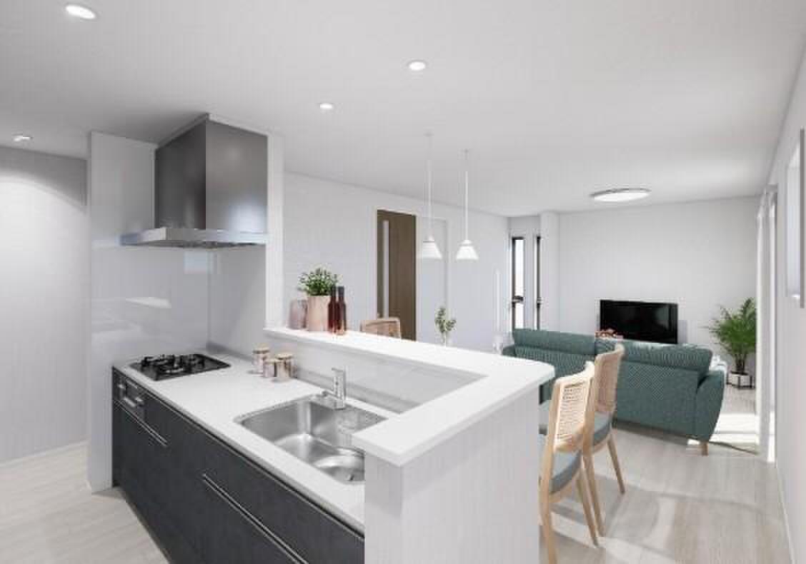 ご家族との会話を楽しみながらお料理が出来る、人気の対面キッチンです♪※家具、家電、照明器具、小物、カーテン、その他のイメージはCG です。