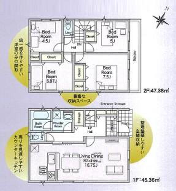 4号棟 間取り 4LDK 価格 3680万円 建物面積 90.72m2 土地面積 137.35m2 -