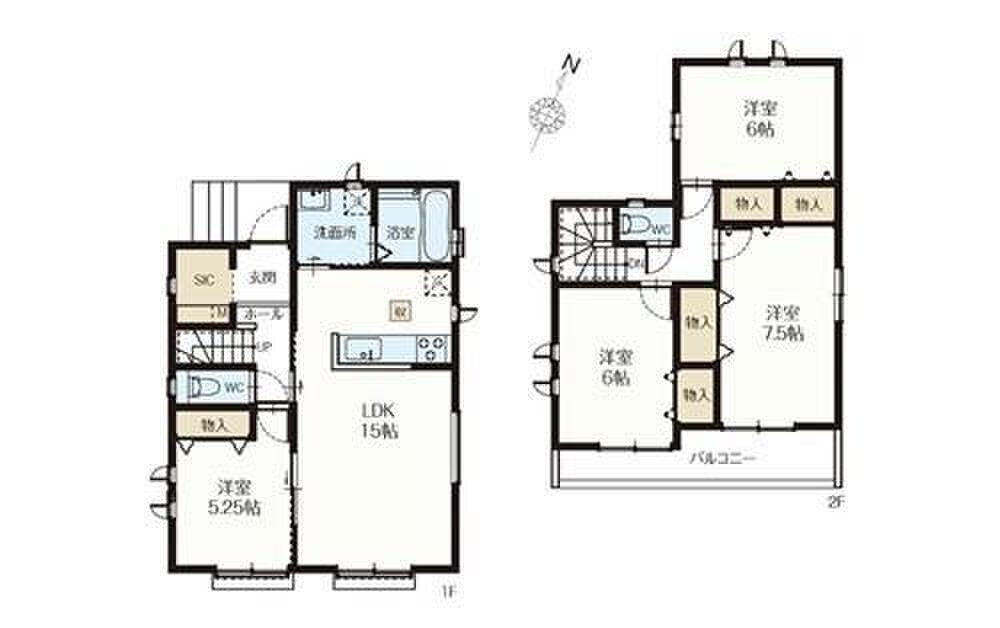 B号棟 間取り 4LDK 価格 4390万円 建物面積 94.39m2 土地面積 120.74m2 -