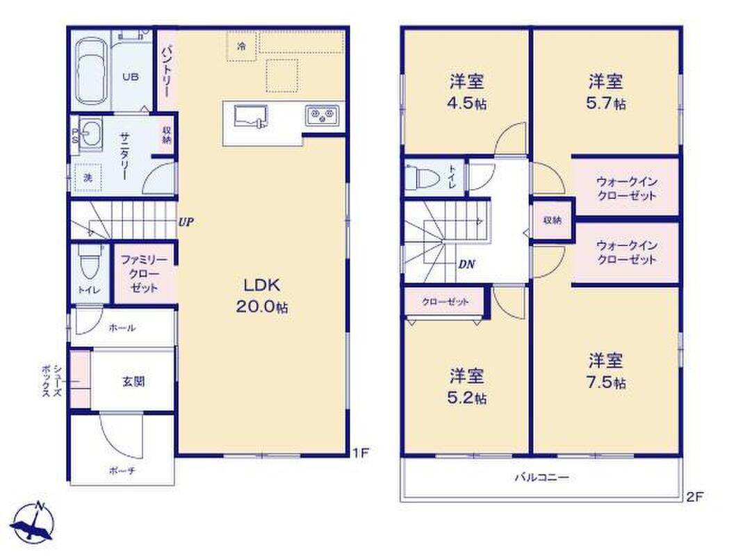 □2部屋にWIC付きで収納充実