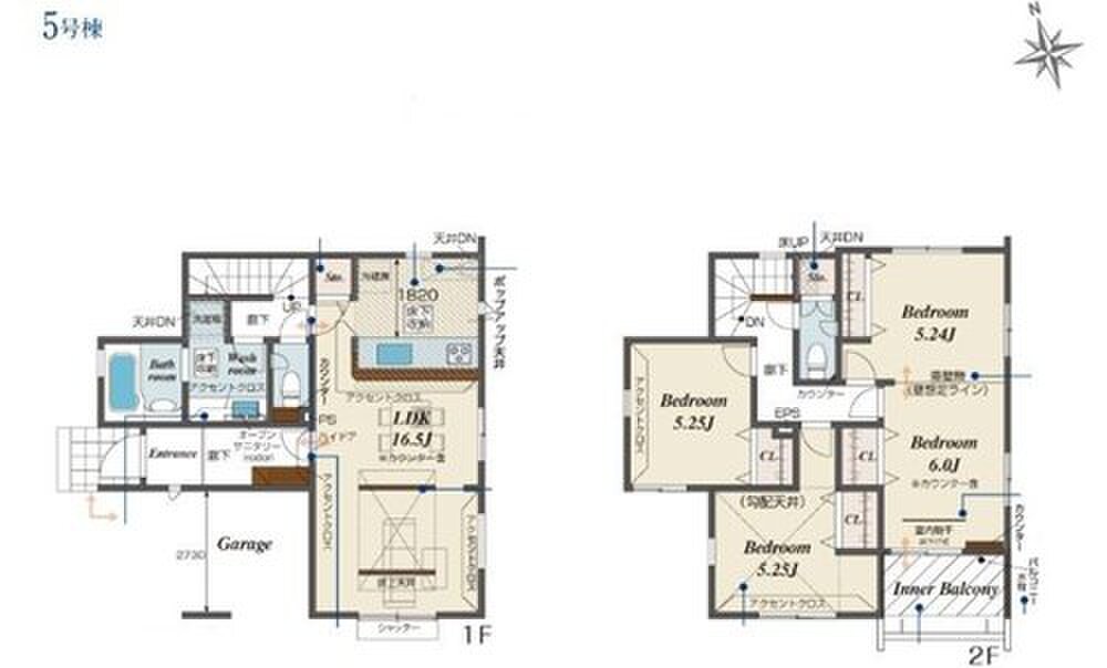 5号棟 間取り 3LDK 価格 4780万円 建物面積 109.36m2 土地面積 121.54m2 -