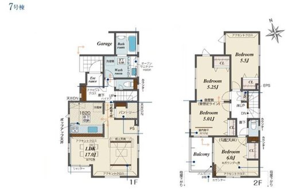 7号棟 間取り 3LDK 価格 3890万円 建物面積 98.12m2 土地面積 121.06m2 -