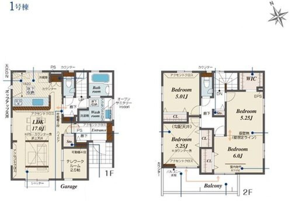 1号棟 間取り 4LDK 価格 4690万円 建物面積 105.57m2 土地面積 130.14m2 -