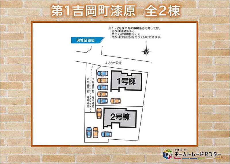 | 駐車場 | 4台 ~ 6台(6台(1号棟)・4台(2号棟)) | 道路の幅員 | 道路幅:4.8m、アスファルト舗装 |