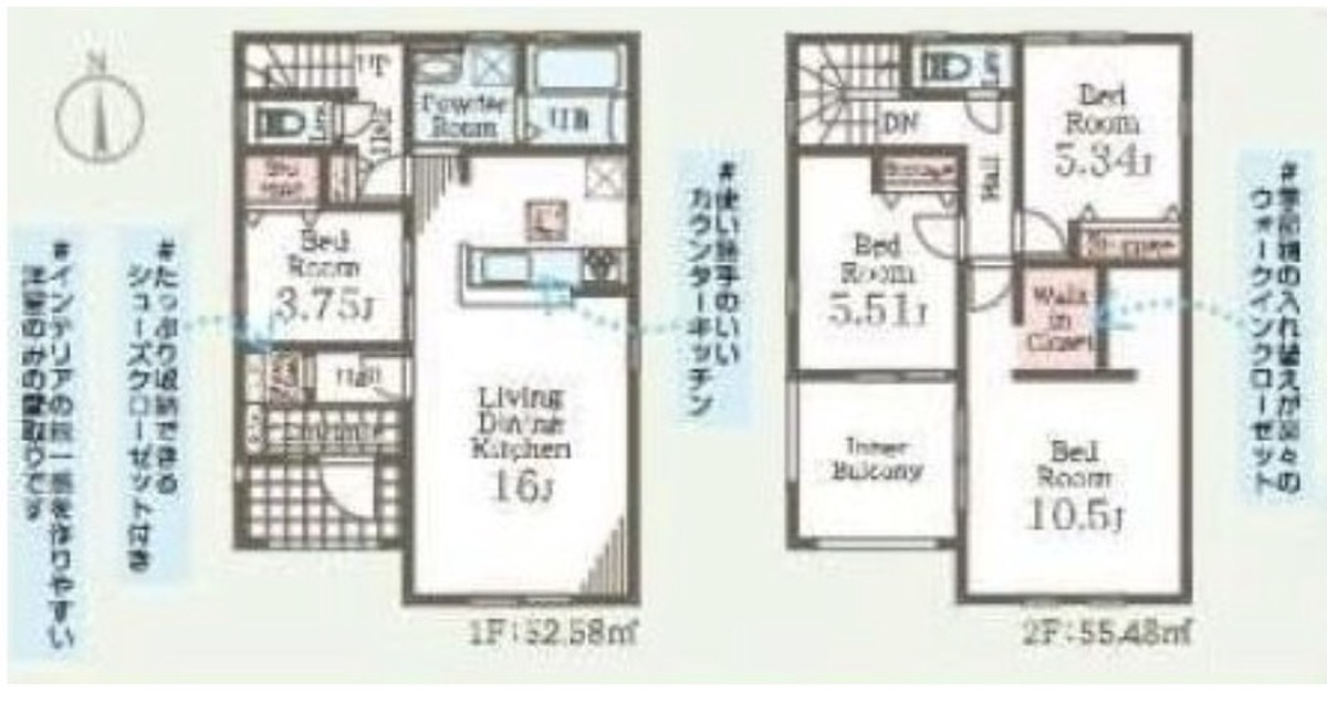 2号棟 間取り 4LDK 価格 2580万円 建物面積 108.06m2 土地面積 180.45m2 -
