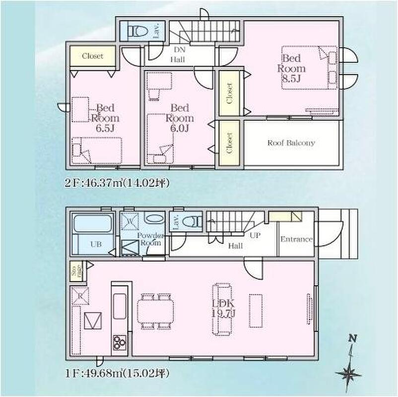 | 建物面積 | 95.64m2~96.05m2 | 土地面積 | 136.43m2~137.17m2(41.26坪~41.49坪)(実測) |