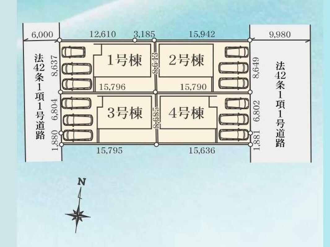 | 駐車場 | 3台(※車種による) | 道路の幅員 | 道路幅:6m~10m、アスファルト舗装、東側10m市道、西側6m市道 |