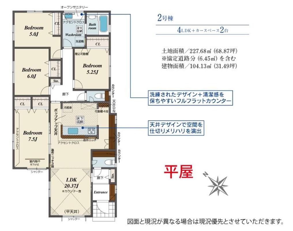 - 104.13m2・107.67m2(31.49坪・32.57坪)
