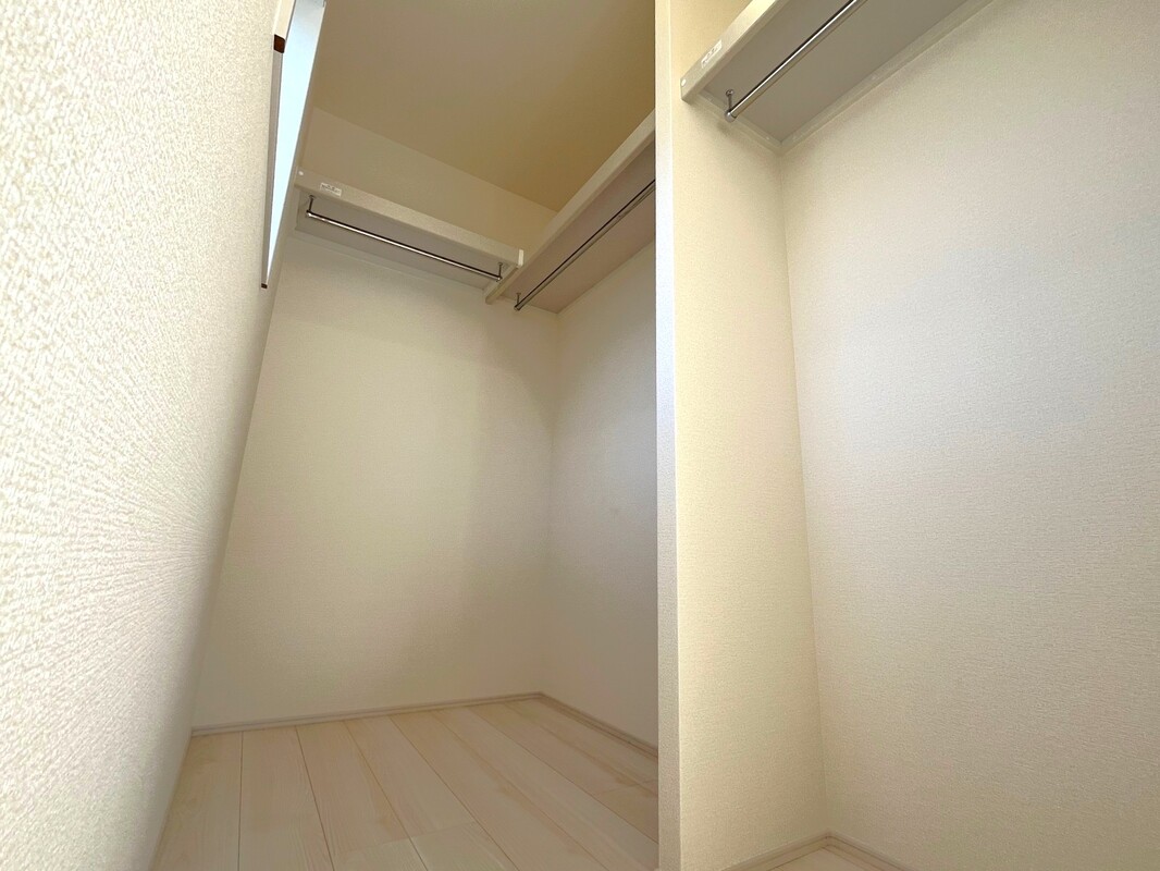 お子様との思い出もたっぷりしまえるウォークインクローゼット。衣類だけでなく、鞄などの小物からスーツケースやレジャー用品などの大きな物までたっぷり収納出来ます。