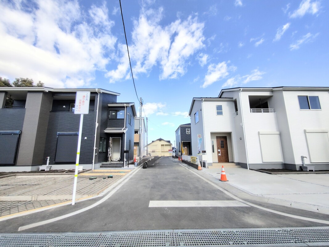 | 駐車場 | 2台 ~ 3台(3台(1号棟・2号棟・4号棟)、2台(3号棟)) | 道路の幅員 | 道路幅:3.2m~5m、アスファルト舗装、南側約3.2m公道、中央側約5.0m公道 |