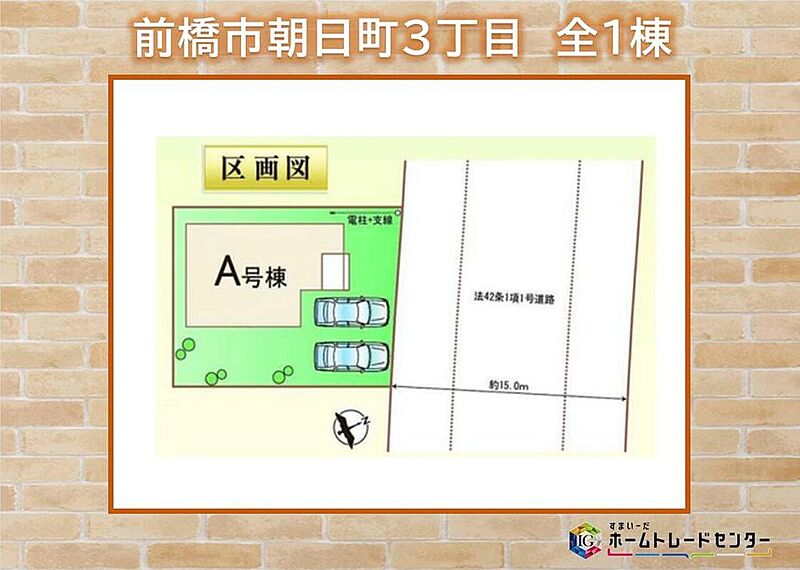| 駐車場 | 2台 | 道路の幅員 | 道路幅:15m、アスファルト舗装、北東側約15.0m公道(法42条1項1号道路) |