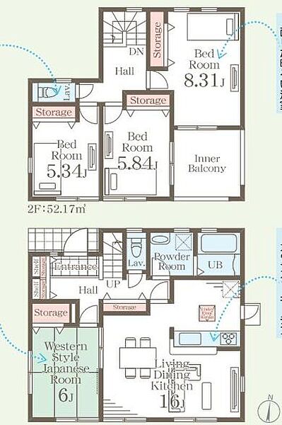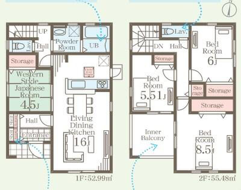| 建物面積 | 108.47m2~122.55m2(32.81坪~37.07坪) | 土地面積 | 265.84m2~302.84m2(80.41坪~91.60坪) |