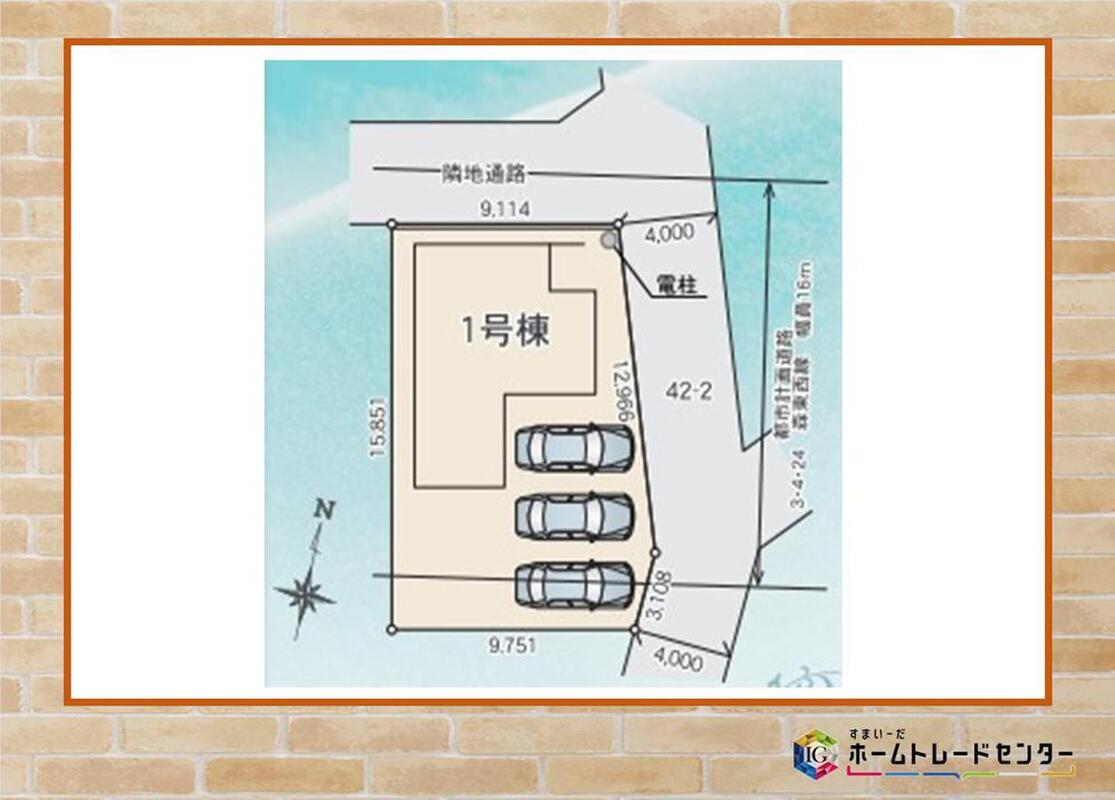 | 駐車場 | 3台 | 道路の幅員 | 道路幅:4m、アスファルト舗装、東側約4.0m市道、南東側約4.0m市道 |