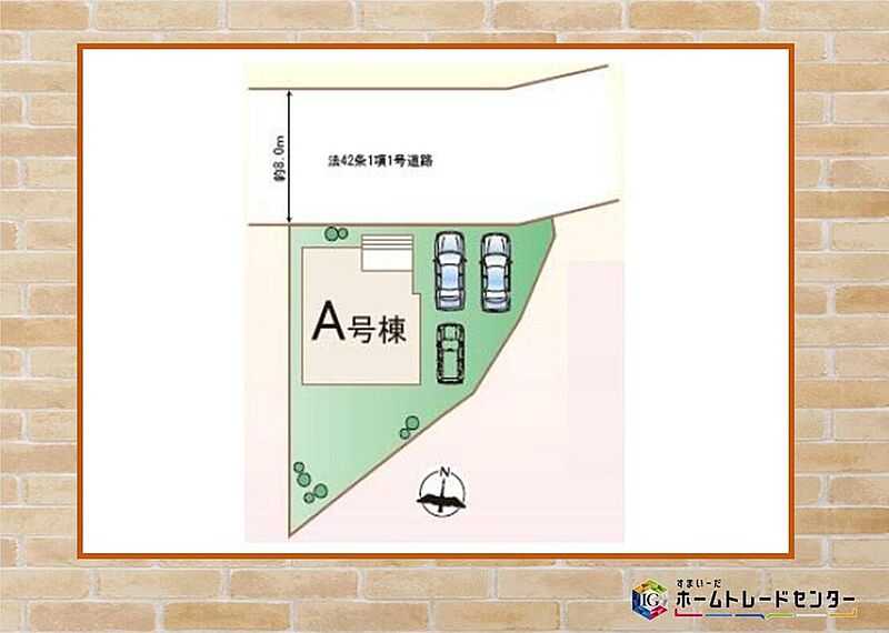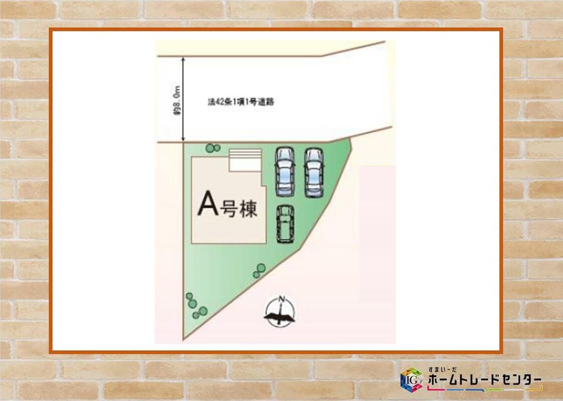 | 駐車場 | 3台 | 道路の幅員 | 道路幅:8m、アスファルト舗装、北側約8.0m公道(法42条1項1号道路) |